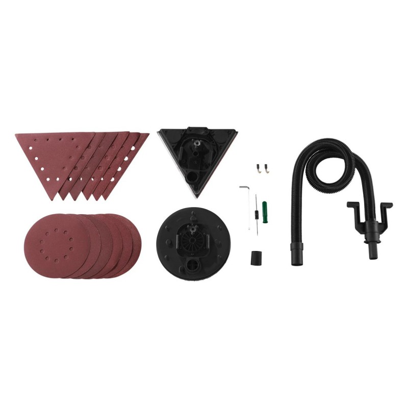 Průměr brusného talíře: kulatý: Ø 21,5 cm; trojúhelníkový: 28,5 x 28,5 cm