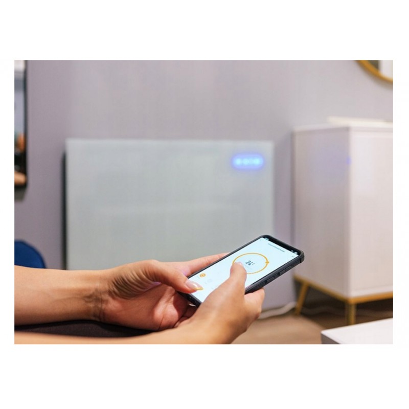 Panel zle i ovládat pomocí dotykového ovládaní nebo díky integrované Wi-Fi se může topný panel připojit k internetu a poté ho ovládat odkudkoli prostřednictvím aplikace Tuya