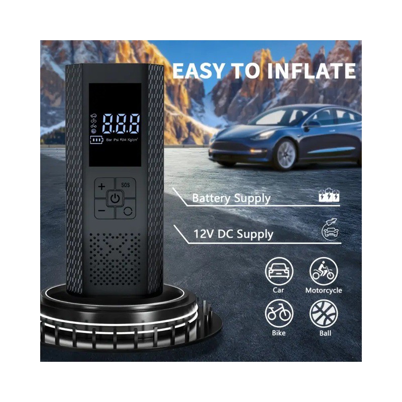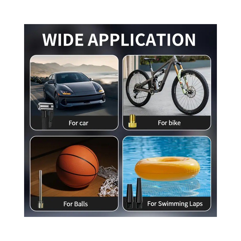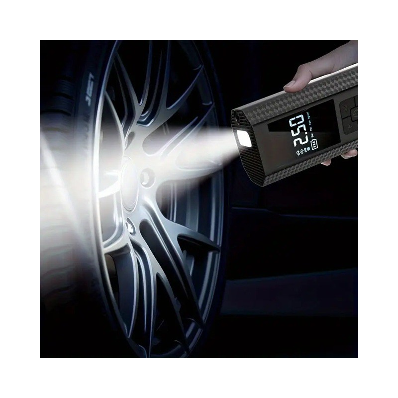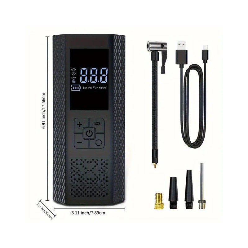 nafoukne až 10 automobilových pneu na jedno nabití, 6 Ah akumulátor, redukce na ventilky a míče, svítilna, SOS blikání