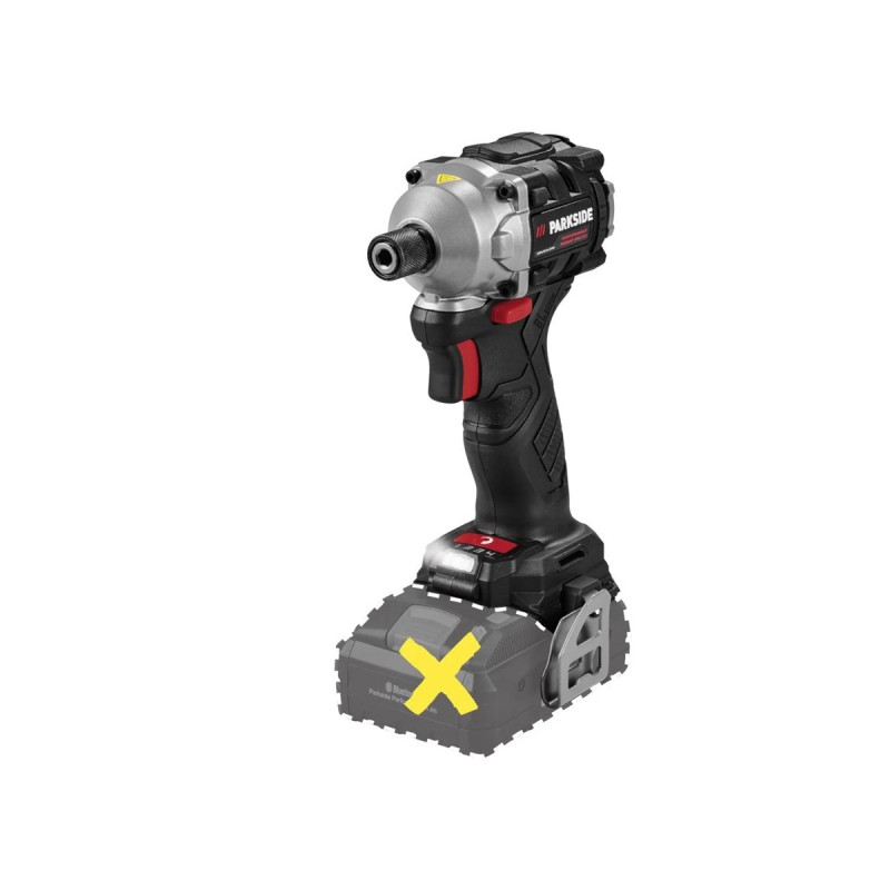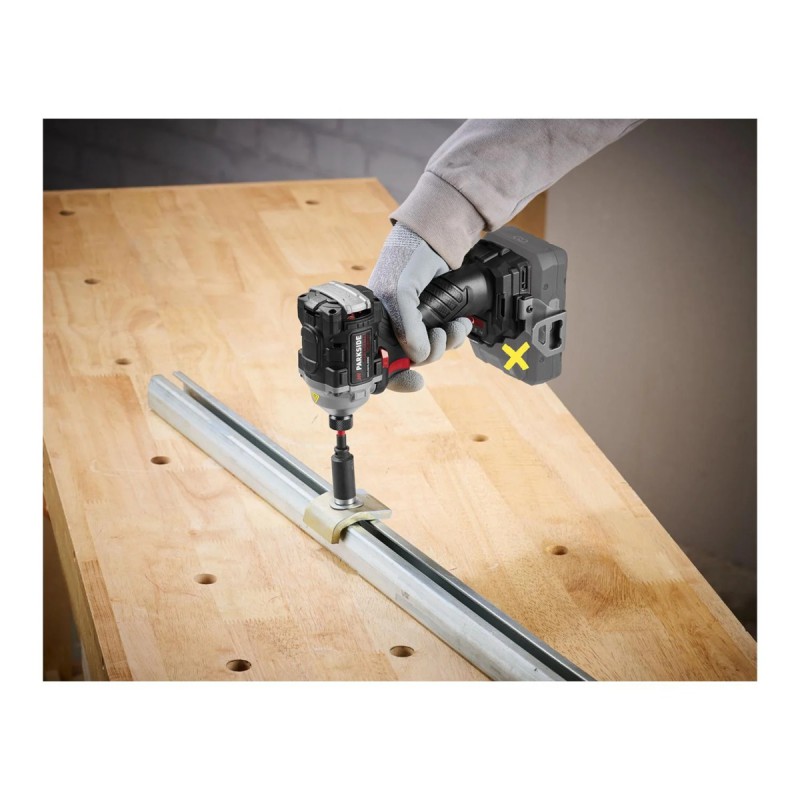 X 20 V Team , 4 stupně točivého momentu 120 / 150 / 190 / 226 Nm , volnoběžné otáčky 0–3 600 min , uchycení nástroje 1/4″ , přizpůsobení pomocí aplikace PARKSIDE , kompaktní při délce cca 119 mm