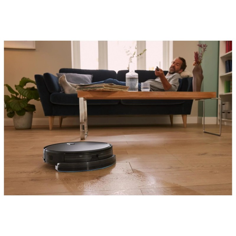 Gyroskopický senzor , 2 postranní kartáče pro efektivní čištění , automatický návrat k nabíjecí stanici , 4 režimy čištění , sací výkon 400 / 800 / 2000 Pa , Li-Ion akumulátor 14,4 V, 2 v 1: vysávání a stírání v jednom zařízení